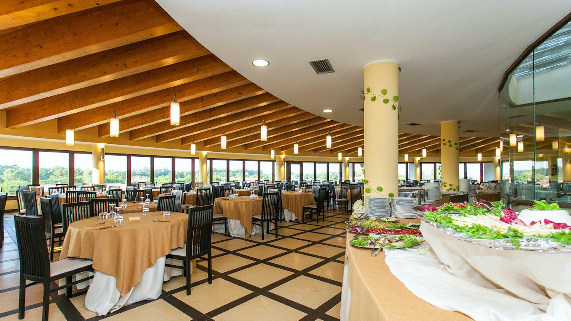 DESCRIZIONE E SERVIZI: è composta da un nuovissimo ed elegante Hotel “ZEUS” di 104 camere su tre piani e dall’Hotel “GIUNONE “con 44 camere. CAMERE: eleganti e molto confortevoli; tutte dispongono asciugacapelli, telefono, TV, cassaforte, minifrigo non attrezzato. Si dividono in: ZEUS: Camere Standard, doppie, triple, quadruple (4° letto a castello) distribuite tra piano terra, primo piano e piano mansardato (assegnazione a discrezione della Direzione in base alla disponibilità). Servizi con vasca nelle camere del piano terra e primo piano, box doccia nelle camere dell'ultimo piano. Camere Comfort (doppie, triple, quadruple e quintuple), molto confortevoli, di dimensioni doppie rispetto alle camere standard e dotate di balcone. Al piano terra e primo piano sono quadruple con possibilità di 5° letto su richiesta, bagno con doccia idromassaggio. All’ultimo piano sono doppie/triple con bagno con vasca idromassaggio. Camere Comunicanti (su richiesta) ubicate in mansarda e costituite da 2 camere comunicanti con 2 servizi (occupazione 4/6 persone). Per le camere comunicanti viene richiesto pagamento minimo 4 quote intere + eventuale 5°/6°letto (su richiesta) con riduzioni da tabella. GIUNONE: Camere Standard, (doppie, triple, quadruple con 4° letto a castello), dotate di servizi privati con box doccia. Bicamere (triple, quadruple e quintuple) costituite da 2 camere con unico servizio con box doccia, atte ad ospitare su richiesta fino a 5 persone. Le camere del piano terra e primo di entrambi gli Hotel dispongono di poggiolo. Le mansardate hanno il finestrone. Le Comunicanti/Zeus e le Bicamere/Giunone sono ideali per nuclei familiari o di amici. Per finire, in entrambi gli hotel, camere standard a 2 letti a norma CEE adatti anche a persone diversamente abili. RISTORAZIONE: Nel Resort sono a disposizione i seguenti ristoranti: ristorante Demetra nell’ hotel ZEUS e ristorante Dafne nell’hotel GIUNONE; in entrambi il servizio è a buffet arricchito con piatti tipici regionali ed alcune serate a tema. Acqua e vino in caraffa sempre inclusi. SPIAGGIA: di sabbia (ciottoli sul bagnasciuga) dista 400 metri e si raggiunge con un percorso pedonale, in buona parte ombreggiato, o con navetta dell’albergo a orari prestabiliti. Sono a disposizione: 1 ombrellone, 1 lettino e 1 sdraio per unità abitativa, inclusi nella Tessera Club (escluso 1°/2° fila, prenotazione e pagamento in loco).