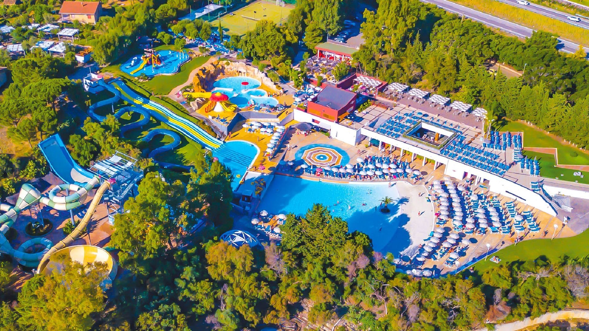 Il Costa Verde Acqua Park & Spa Hotel comprende: Hotel, Acquapark, SPA e Beach Village. Hotel: E’ il luogo ideale per le famiglie. Nel corpo centrale vi sono le Camere, due grandi Piscine: una dedicata alle attività e al divertimento (600mq) con area riservata ai bambini e l'altra, una Infinity Pool (430 mq) riservata al relax con sfioro vista mare e zona idromassaggio; quattro ristoranti (vedi ristorazione), zona dedicata allo Shopping comprensiva di boutique, bazar, edicola tabacchi, parrucchiere, l’Anfiteatro, la Sala conferenze e Tv, i Bar, l’Area fitness, la Discoteca, il Campo da bocce e Tiro con l’arco, il tavolo da Ping Pong, il Campo di calcetto e Tennis polivalente e l'adventure Mini Golf a 9 buche.