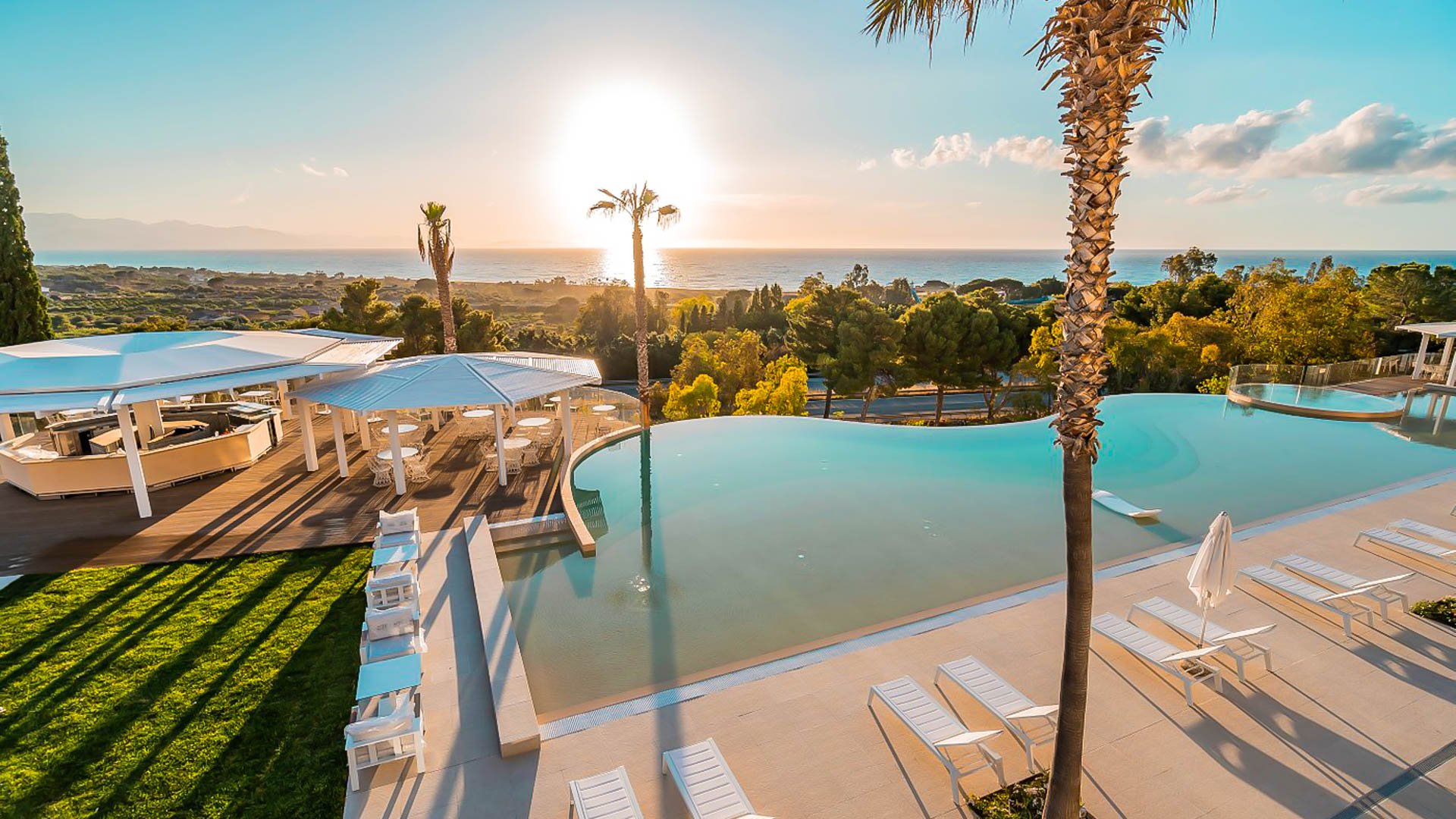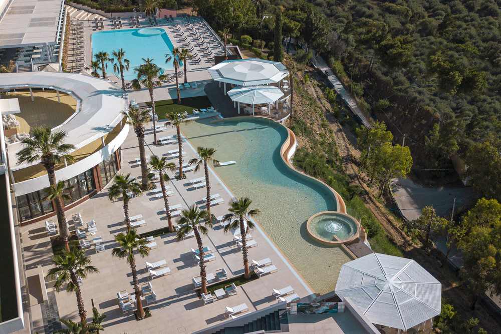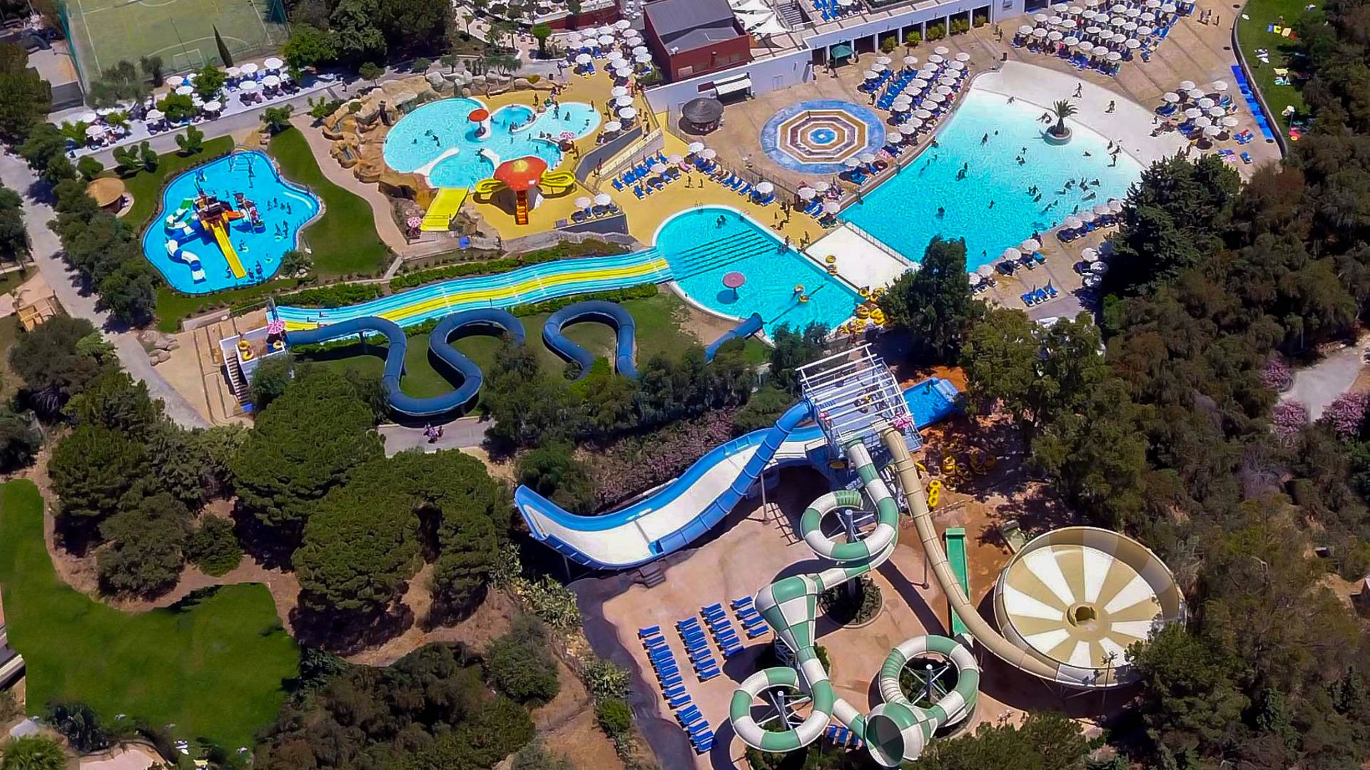 Il Costa Verde Acqua Park & Spa Hotel comprende: Hotel, Acquapark, SPA e Beach Village. Hotel: E’ il luogo ideale per le famiglie. Nel corpo centrale vi sono le Camere, due grandi Piscine: una dedicata alle attività e al divertimento (600mq) con area riservata ai bambini e l'altra, una Infinity Pool (430 mq) riservata al relax con sfioro vista mare e zona idromassaggio; quattro ristoranti (vedi ristorazione), zona dedicata allo Shopping comprensiva di boutique, bazar, edicola tabacchi, parrucchiere, l’Anfiteatro, la Sala conferenze e Tv, i Bar, l’Area fitness, la Discoteca, il Campo da bocce e Tiro con l’arco, il tavolo da Ping Pong, il Campo di calcetto e Tennis polivalente e l'adventure Mini Golf a 9 buche.