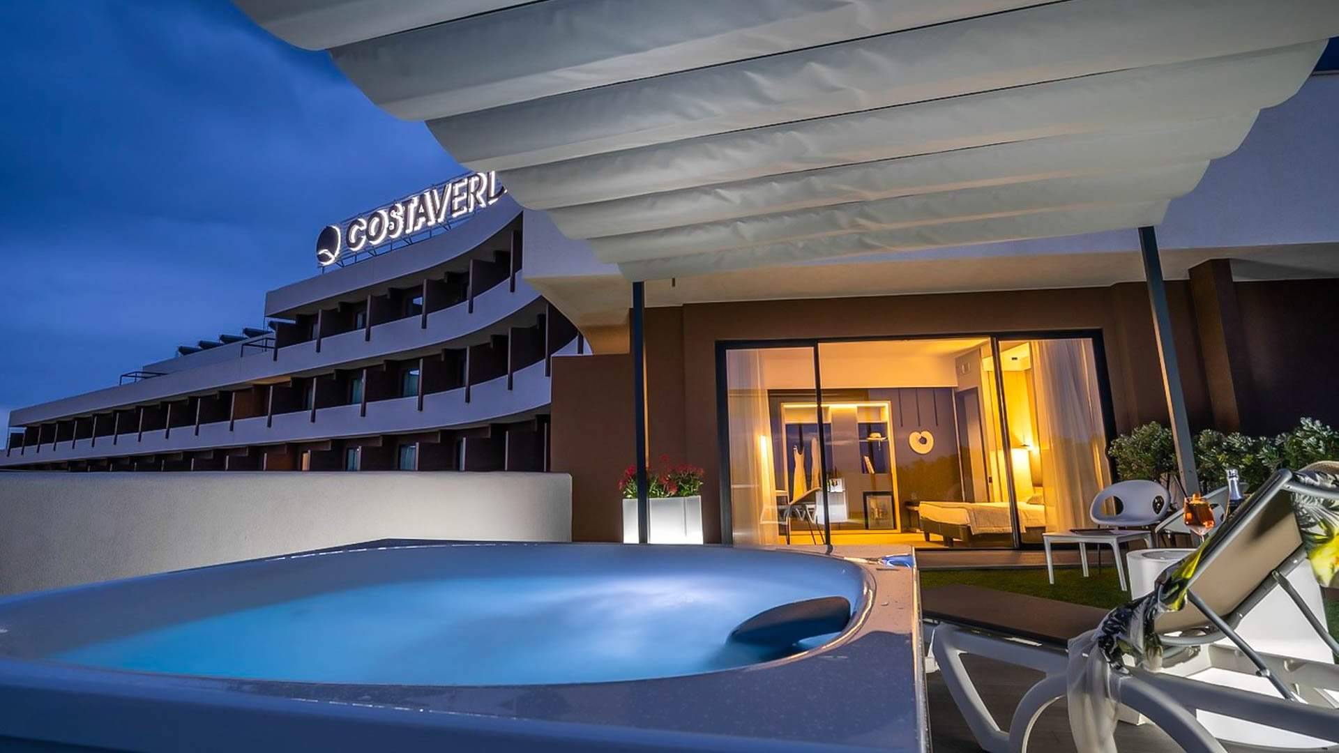 Camera Comfort: Arredo moderno, fresco ed estivo in un’atmosfera luminosa e accogliente. Ampio balcone arredato con sedie e tavolo con vista sui dintorni dell’hotel. Cassaforte, Frigo, TV satellitare, presa USB, Wi-fi open, Phon. Occupazione 1-4 persone